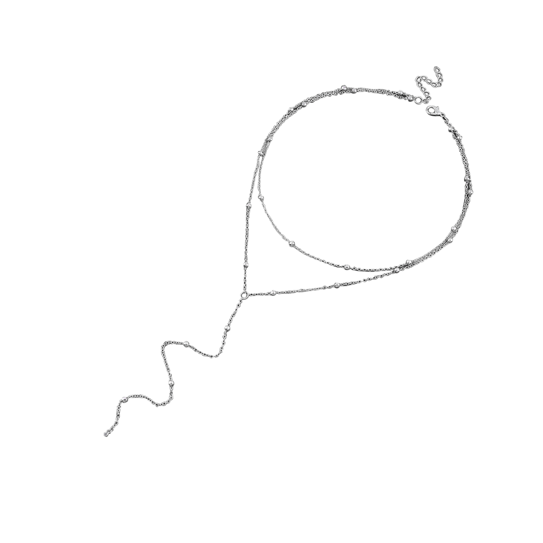 El collar Alina | Resplandor bohemio | El collar de plata combina un delicado diseño de doble capa en forma de Y con un intrincado trabajo de cuentas para lograr un aspecto elegante y sin esfuerzo. Perfecto para uso diario, fiestas o eventos especiales, añade profundidad y estilo a cualquier escote.