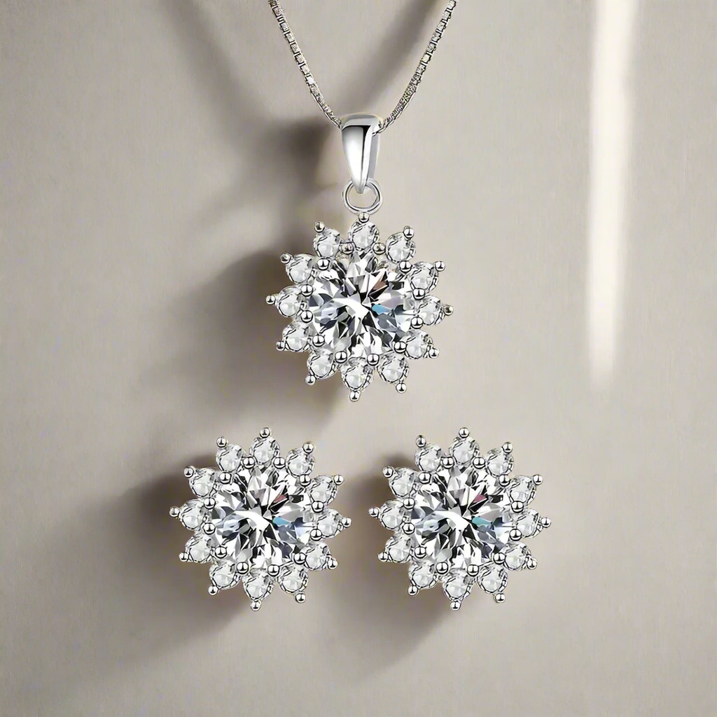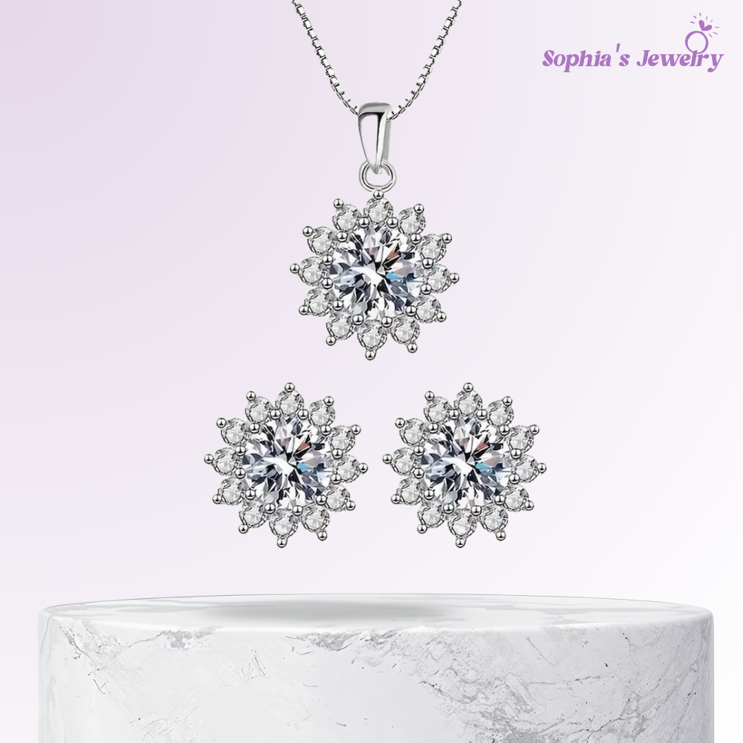 Patricia | Juego de joyería plateada con circonia en forma de flor